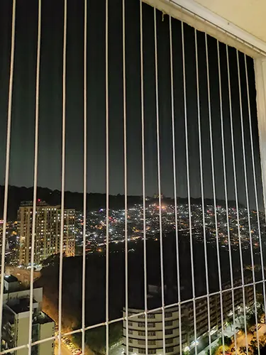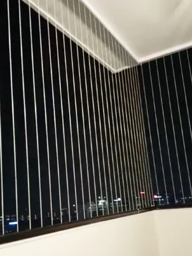 The thin cables (usually 2mm–3mm) are almost invisible from a distance, allowing fresh air, natural light, and a clear outside view.