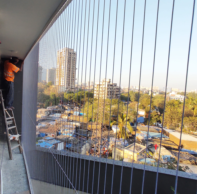 An invisible SS grill is a safety barrier made using thin stainless steel wires, usually 2 mm to 3 mm thick. These wires are installed vertically or horizontally across open areas and fixed with strong aluminum frames and secure fittings.